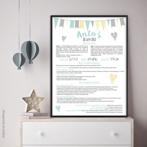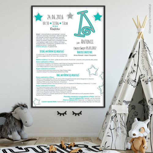 Wyjątkowe dekoracje na ścianę do pokoju dziecka.Projekty plakatów dla dziecka w KAŻDYM wieku, zarówno dla maluszków jak i nastolatków. Plakaty - metryczki urodzeniowe, metryczki roczkowe, modlitwy, cytaty lub po prostu obrazki.