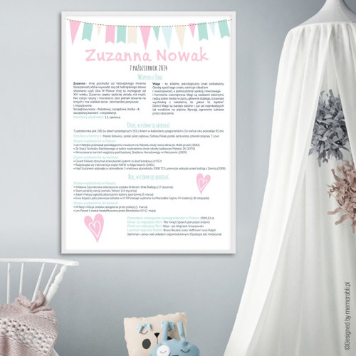 35,00 złW pełni personalizowany certyfikat z informacjami o dniu, roku urodzenia dziecka i nie tylko.