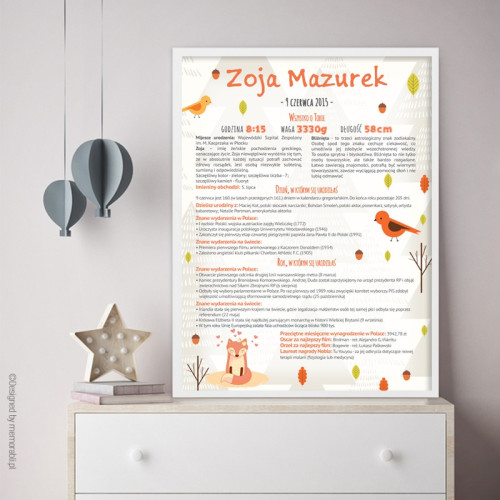 35,00 złW pełni personalizowany certyfikat z informacjami o dniu, roku urodzenia dziecka i nie tylko.