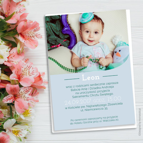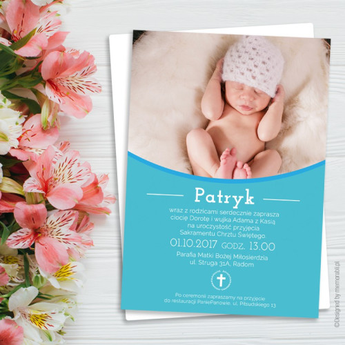 5,00 złPiękne i eleganckie zaproszenie na Chrzest Święty ze zdjęciem Twojego dziecka. Możliwość zmiany kolorystyki.