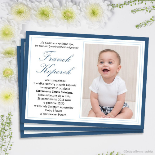 Ramka niebieska ze zdjęciem - zaproszenie na chrzest