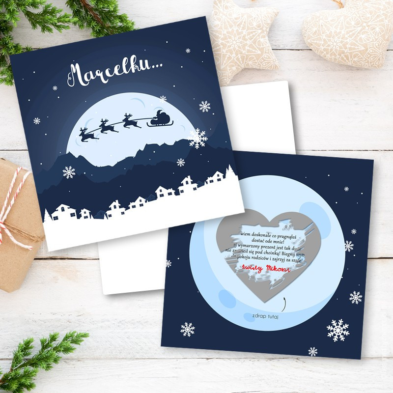 Sanie Mikołaja ze zdrapką - karta zdrapka na boże narodzenie