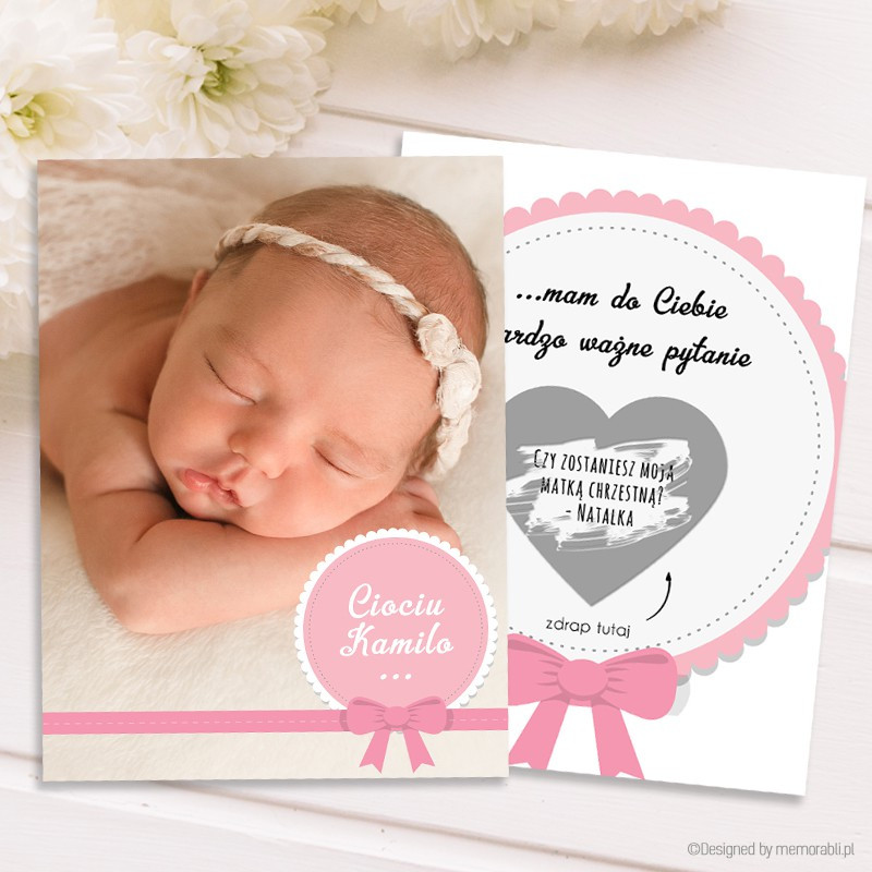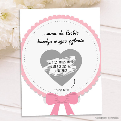 Zostaniesz rodzicem chrzestnym - kokarda różowa - kartka zdrapka