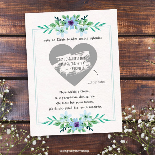 Zostaniesz rodzicem chrzestnym - kwiaty miętowe - kartka zdrapka