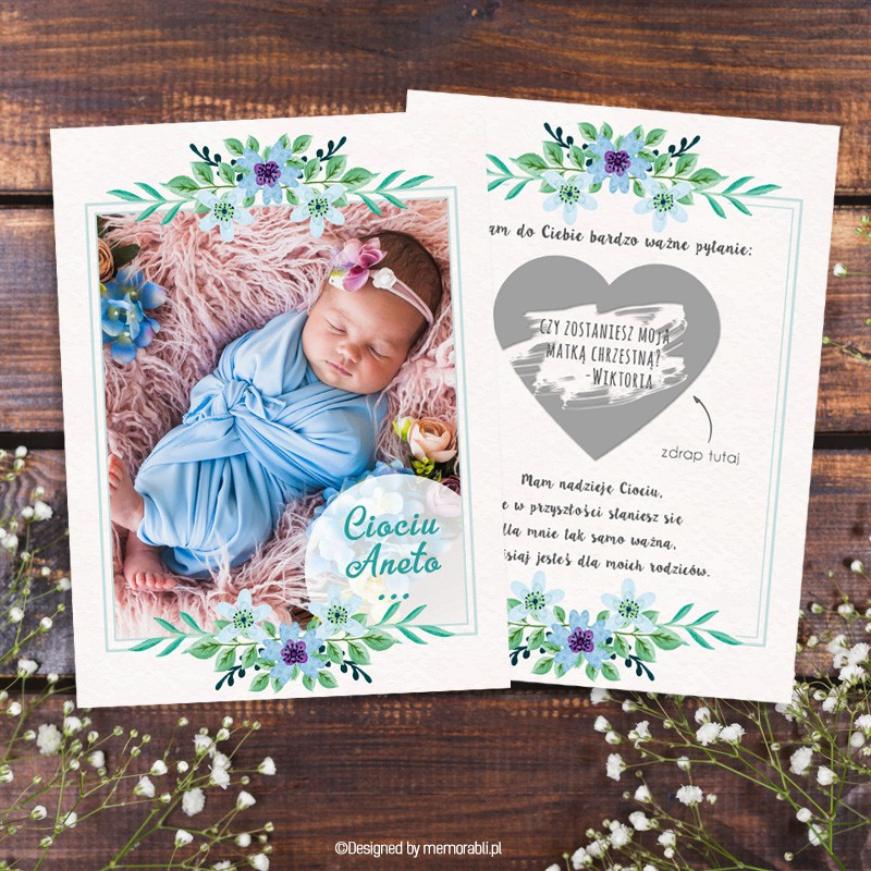 Ciociu czy zostaniesz moją mamą chrzestną? Wujku czy zostaniesz moim tatą chrzestnym? Spersonalizowane kartki ze zdrapką będą bardzo miłą niespodzianką dla przyszłego rodzica chrzestnego.