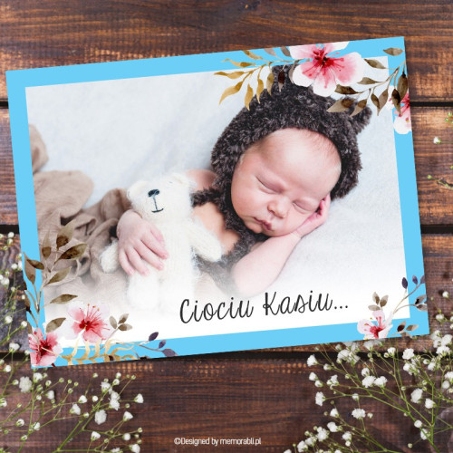 Zostaniesz rodzicem chrzestnym - ramka niebieska z kwiatami duże zdjęcie - kartka zdrapka