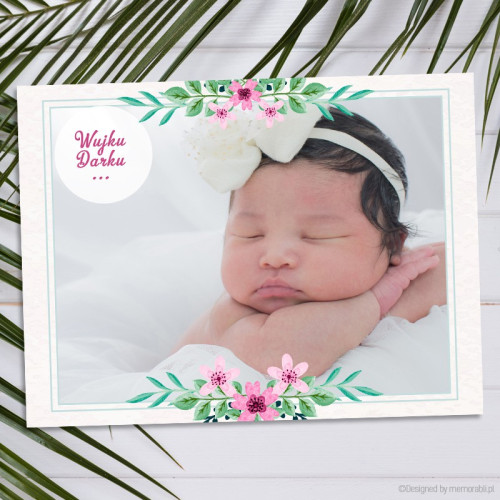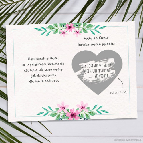 Zostaniesz rodzicem chrzestnym - kwiaty różowo - miętowe pozioma - kartka zdrapka