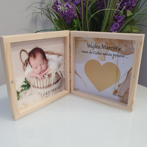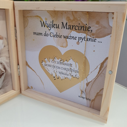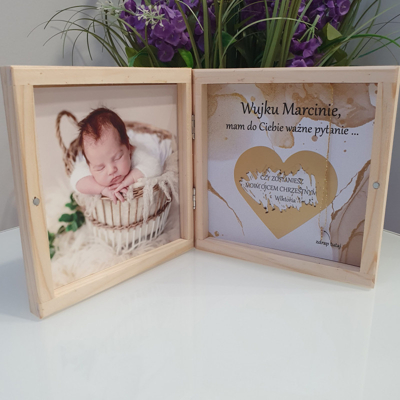 Prośba o zostanie Ojcem Chrzestnym pudełko zdrapka foto zdjęcie szkatułka