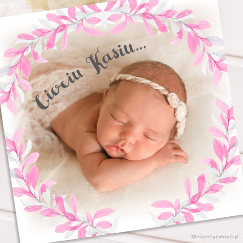Prezentowana grafika jest w pełni personalizowalna! Oznacza to, że na wydruku znajdą się podane przez Ciebie informacje oraz zdjęcie Twojego dziecka. W projekcie tym możesz zmienić kolor elementów dekoracyjnych: mięta, różowy lub niebieski.