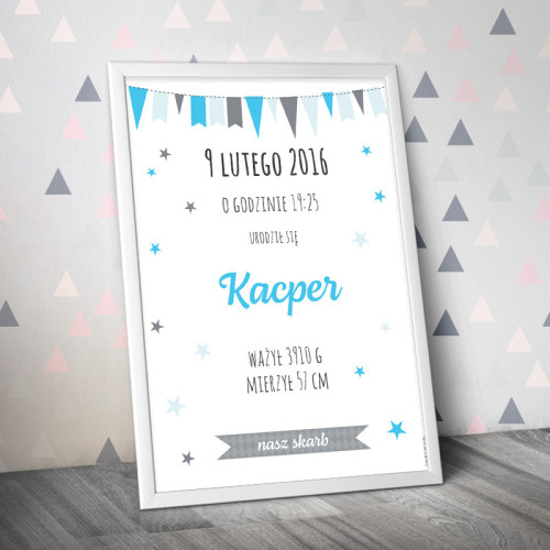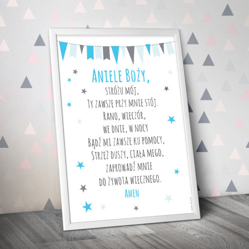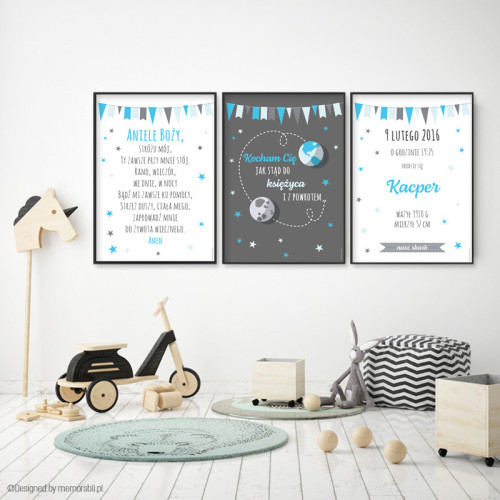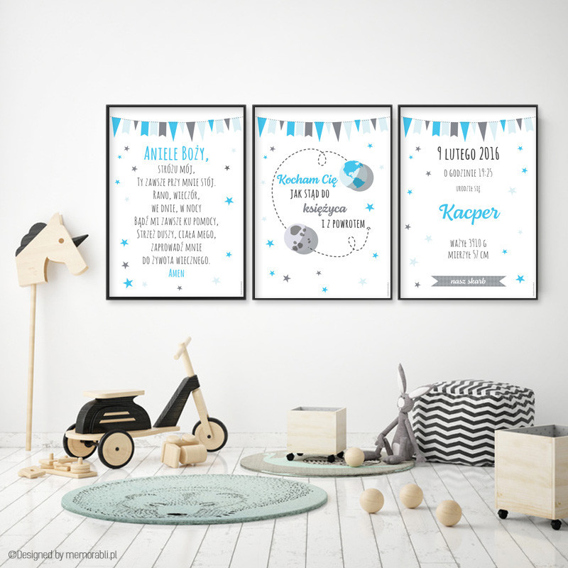 Zestaw plakatów z metryczką dziecka, obrazkiem i modlitwą. Tutaj możesz zamówić wydruki lub wydrukowane plakaty od razu z ramkami projektów, które dostałaś / łeś od nas na email po skorzystaniu z serwisu darmoweplakaty.pl