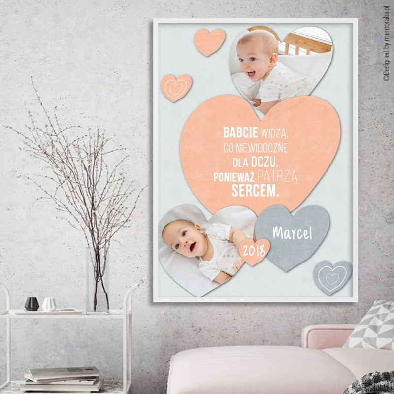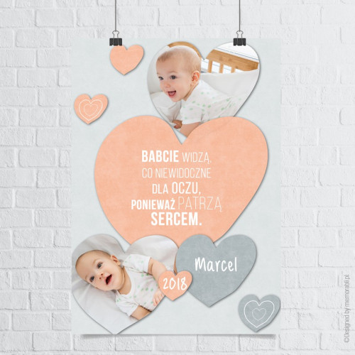 Serce łososiowe + 2 zdjęcia - Plakat dla babci i dziadka