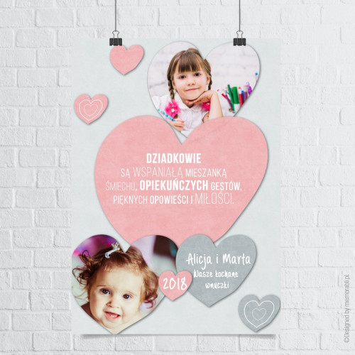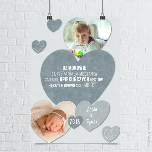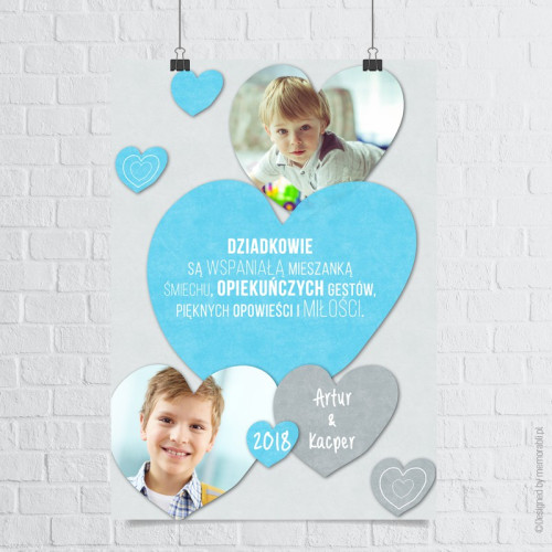 Spersonalizowany plakat dla babci i dziadka to oryginalny pomysł na prezent z okazji ich święta. Warto pamiętać o tym dniu, aby podziękować za ich miłość, obecność i pomoc. Na plakacie zostaną umieszczone Twoje zdjęcia.