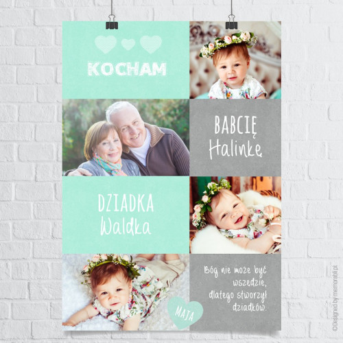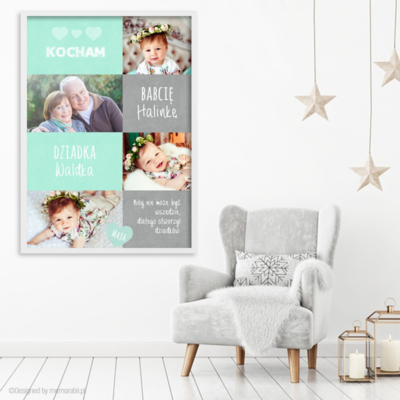Spersonalizowany plakat dla babci i dziadka to oryginalny pomysł na prezent z okazji ich święta. Warto pamiętać o tym dniu, aby podziękować za ich miłość, obecność i pomoc. Na plakacie zostaną umieszczone Twoje zdjęcia.