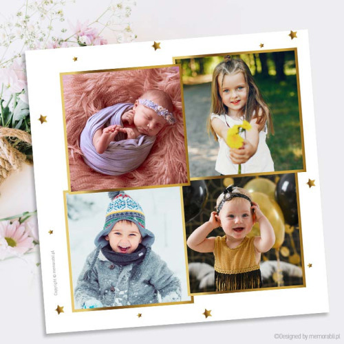 Gwiazdki złote + 4 zdjęcia - kartka zdrapka dla babci i dziadka