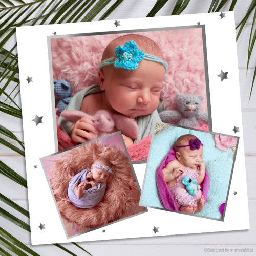 Prezentowana grafika jest w pełni personalizowalna! Oznacza to, że na wydruku znajdą się podane przez Ciebie informacje oraz 3 zdjęcia Twojego dziecka.