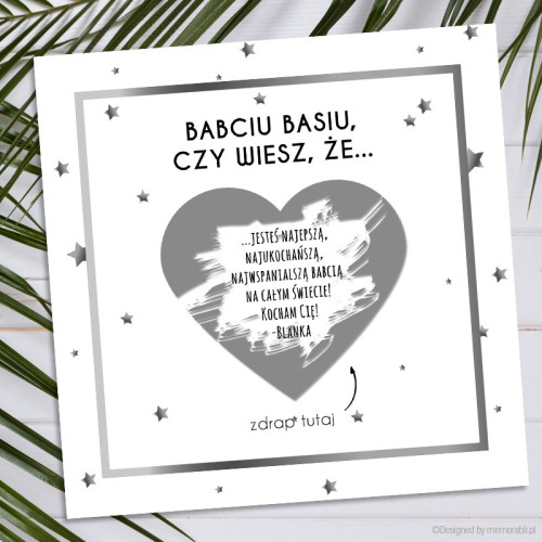 Kartkę zdrapkę możesz zamówić w wersji tylko dla BABCI, DZIADKA lub WSPÓLNĄ. Uśmiech na twarzy dziadków gwarantowany.