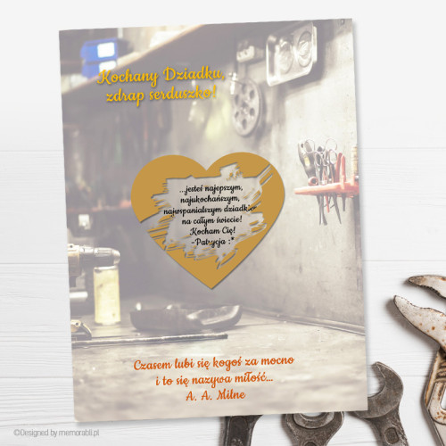 Spersonalizowana kartka ZDRAPKA dla dziadka to oryginalny pomysł na upominek z okazji jego święta lub dodatek do przygotowanego większego prezentu! Pod zdrapką zostanie ukryty dowolny tekst - może być to wierszyk, sentencja lub życzenia płynące prosto z serca wnuków.