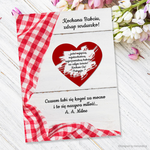 Spersonalizowana kartka ZDRAPKA dla babci to oryginalny pomysł na upominek z okazji jej święta lub dodatek do przygotowanego większego prezentu! Pod zdrapką zostanie ukryty dowolny tekst - może być to wierszyk, sentencja lub życzenia płynące prosto z serca wnuków.