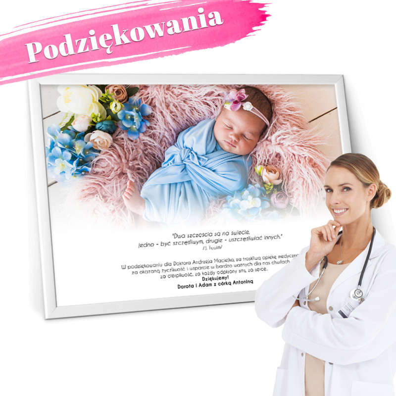 Podziękowanie dla lekarza ze zdjęciem dziecka