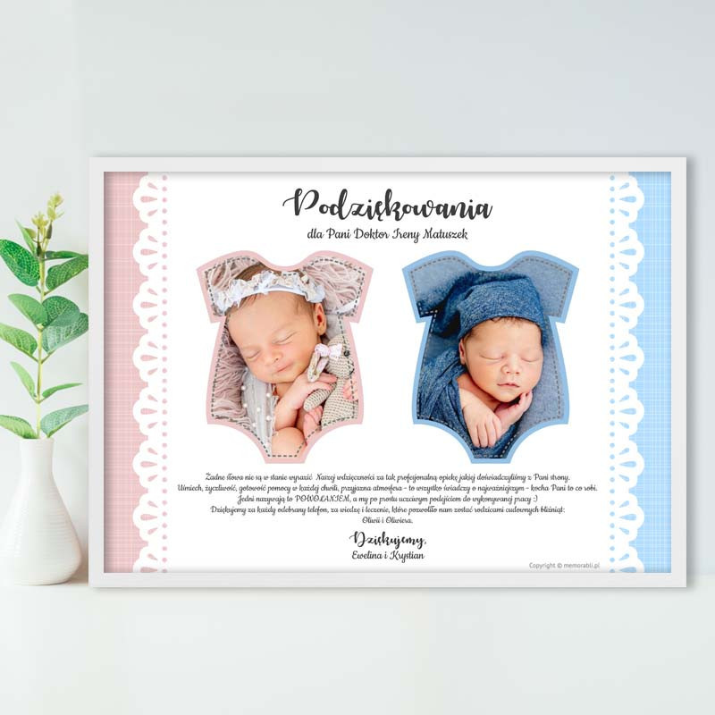 Często wiele zawdzięczamy lekarzowi, który prowadził ciążę, był przy porodzie lub po prostu okazał wiele serca, zaangażowania i pomocy po porodzie zarówno Tobie jak i Twojemu dziecku. A może chcesz wyrazić swoją wdzięczność położnej, pielęgniarce lub całemu oddziałowi? Warto podziękować wręczając spersonalizowaną kartkę lub plakat ze zdjęciem Waszego Szkraba.