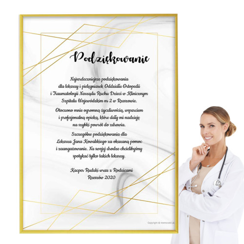 Często wiele zawdzięczamy lekarzowi, pielęgniarce, rehabilitantowi (...) który udzielił nam / bliskiej nam osobie wsparcia, pomocy,  po prostu okazał wiele serca, zaangażowania. A może chcesz wyrazić swoją wdzięczność komuś innemu o wielkim sercu lub całemu oddziałowi w szpitalu / przychodni? Warto podziękować wręczając spersonalizowaną kartkę lub plakat ze zdjęciem Waszego Szkraba.