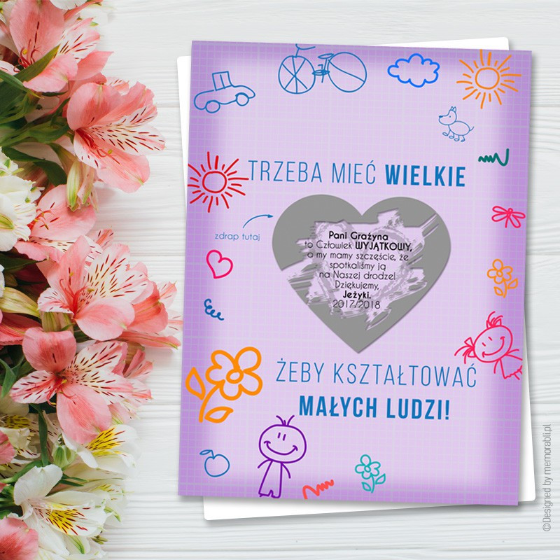 Kartka zdrapka będzie bardzo miłą niespodzianką dla Twojego / Waszego Nauczyciela.