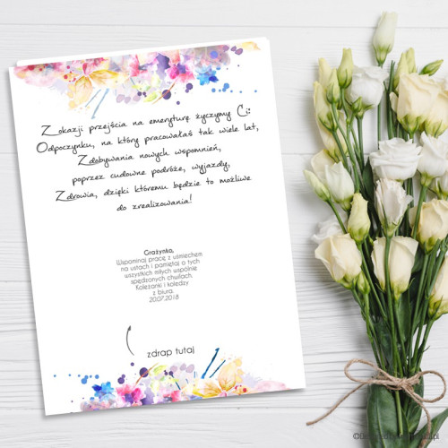 Kartka dla emeryta Kolorowe Kwiaty - Kartka Zdrapka
