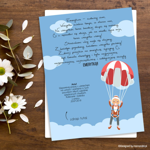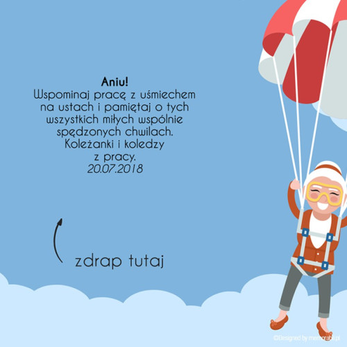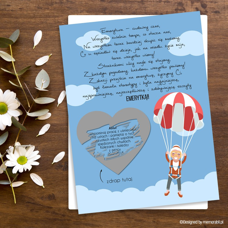 Kartka dla emeryta spadochron kobieta - Kartka Zdrapka
