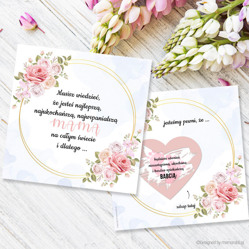 Czy wiesz, że ... zostaniesz babcią! Róże - kartka zdrapka