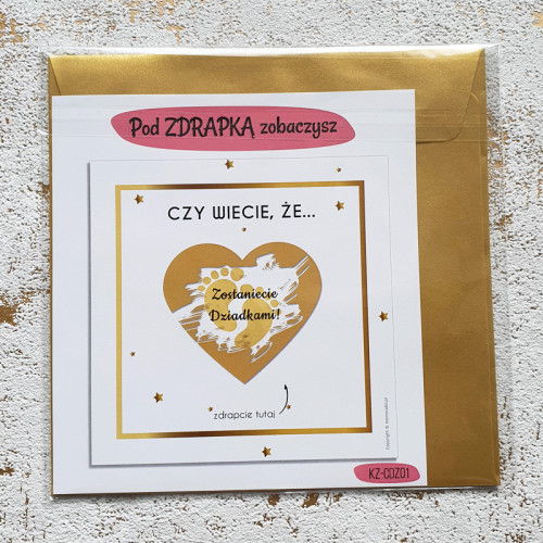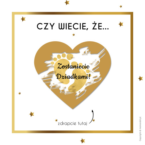 Pod zdrapką została ukryta grafika złotych stópek dziecka z napisem "Zostaniecie dziadkami".