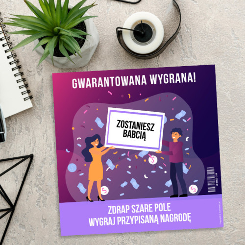 Pod zdrapką został ukryty napis "Zostaniesz babcią".