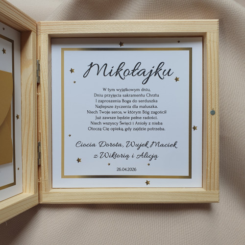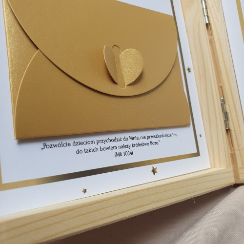 ✅ W pudełku po lewej złota koperta, po prawej kartka z Twoim tekstem.