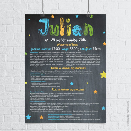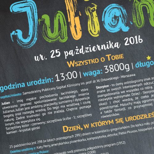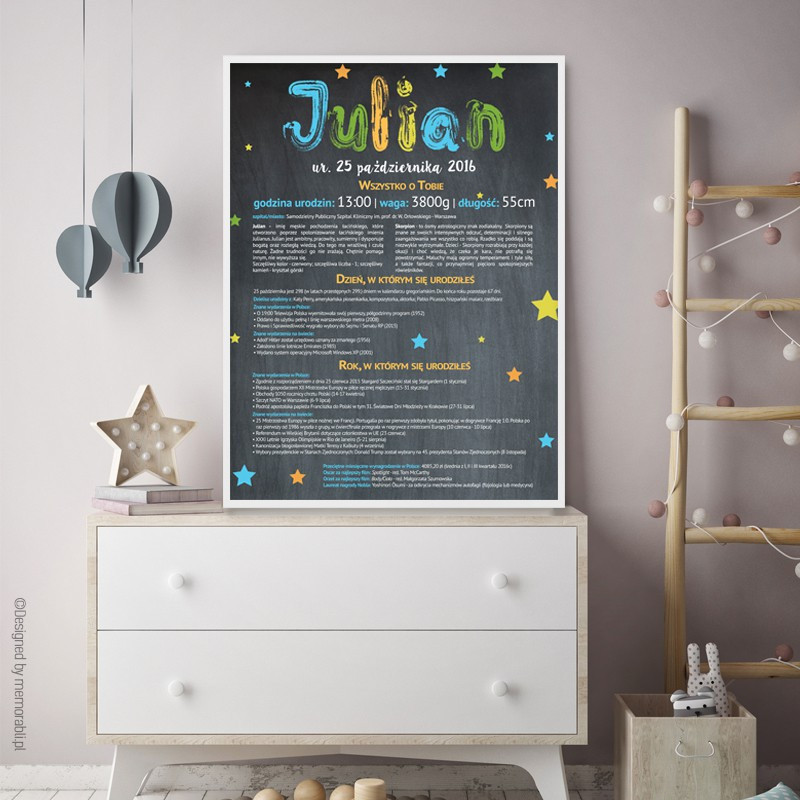 Prezentowana grafika jest w pełni personalizowalna! Oznacza to, że na wydruku znajdą się informacje o Twoim dziecku.