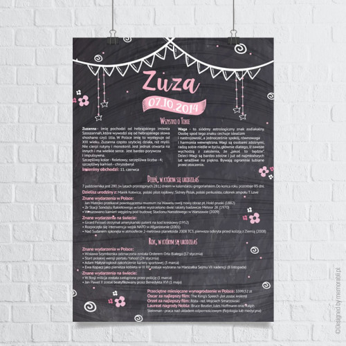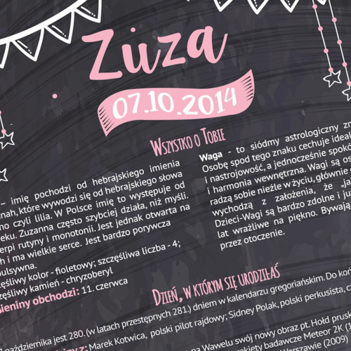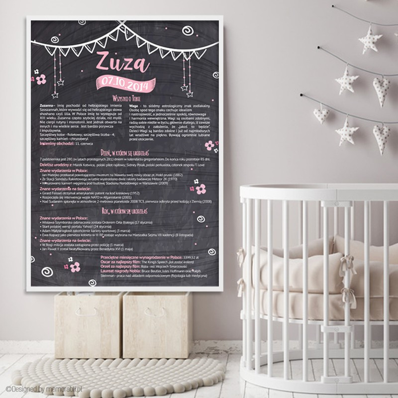 Prezentowana grafika jest w pełni personalizowalna! Oznacza to, że na wydruku znajdą się informacje o Twoim dziecku.