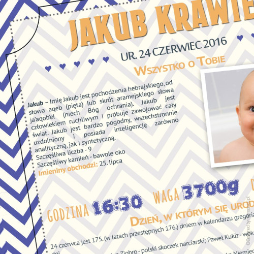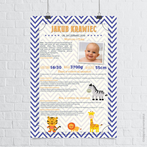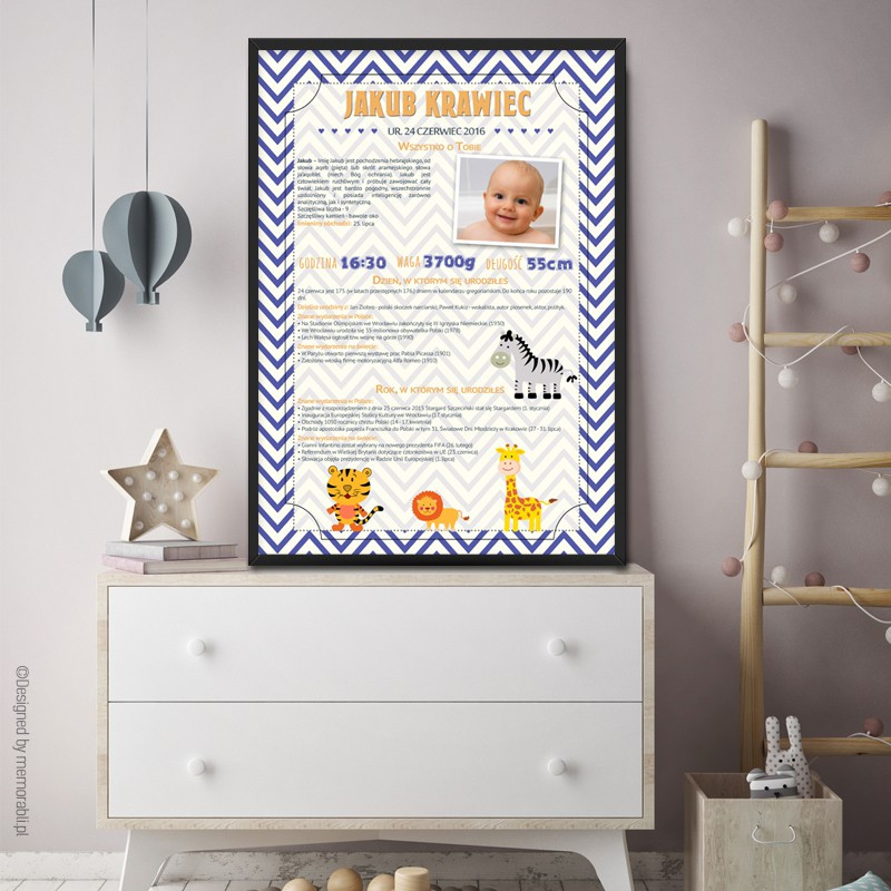 Prezentowana grafika jest w pełni personalizowalna! Oznacza to, że na wydruku znajdą się informacje i zdjęcie Twojego dziecka.