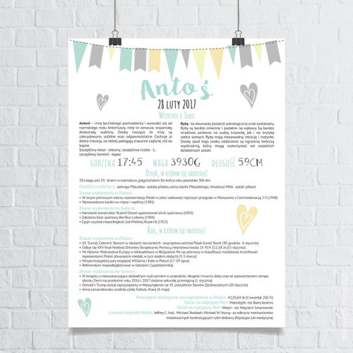 Prezentowana grafika jest w pełni personalizowalna! Oznacza to, że na wydruku znajdą się informacje i zdjęcie Twojego dziecka.