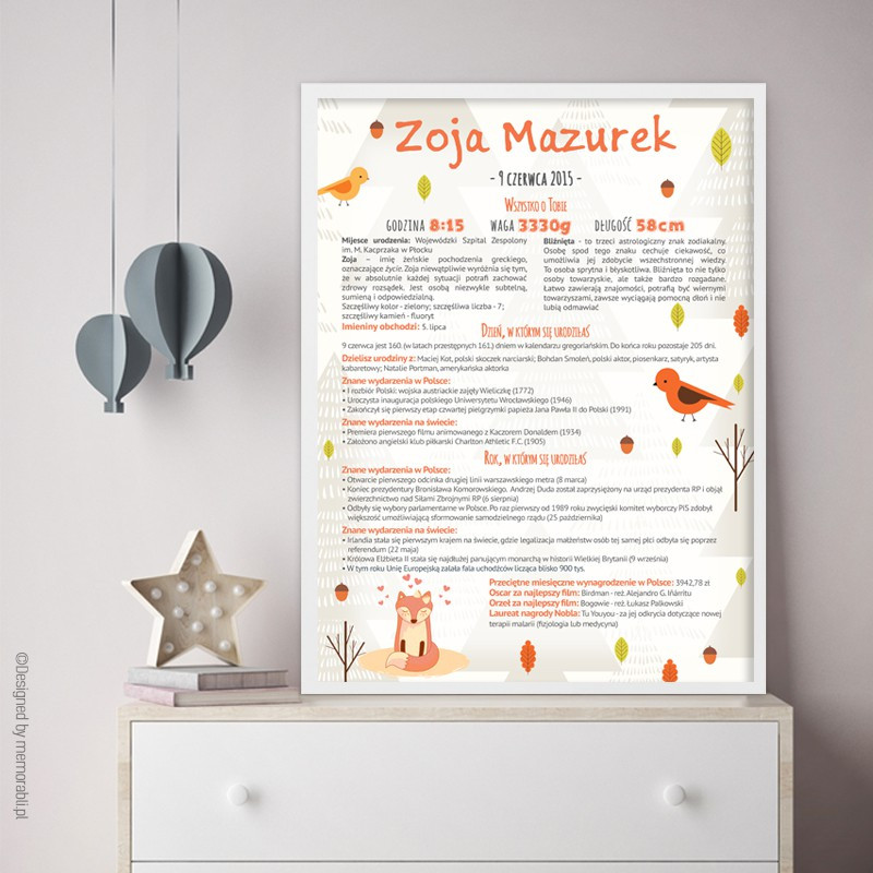 Prezentowana grafika jest w pełni personalizowalna! Oznacza to, że na wydruku znajdą się informacje i zdjęcie Twojego dziecka.