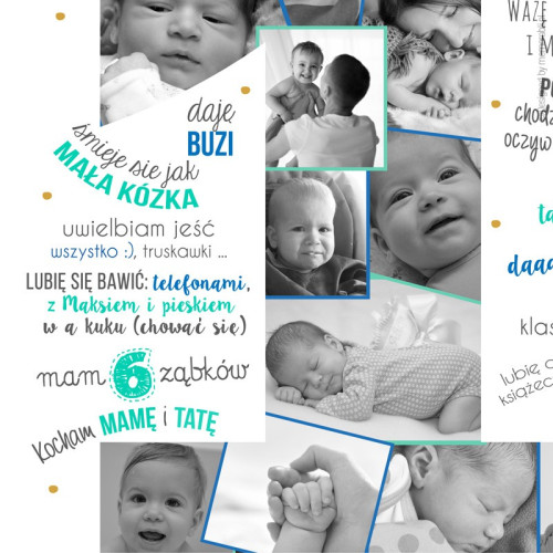 W pełni personalizowana metryczka roczkowa ze zdjęciami Twojego dziecka, która pozwoli zachować wspomnienia ważne, o których potem podczas dojrzewania można zapomnieć. Dzięki metryczce wspomnienia te będą wieczne.