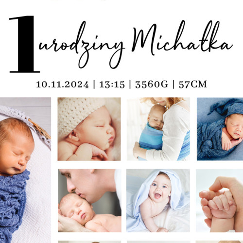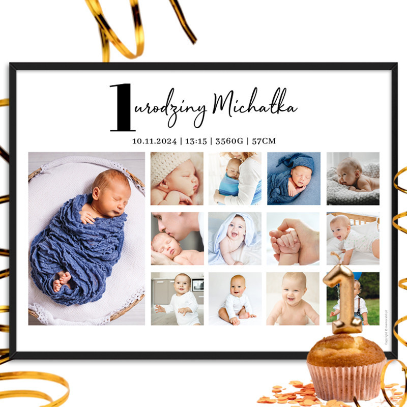 W pełni personalizowana metryczka roczkowa ze zdjęciami Twojego dziecka.