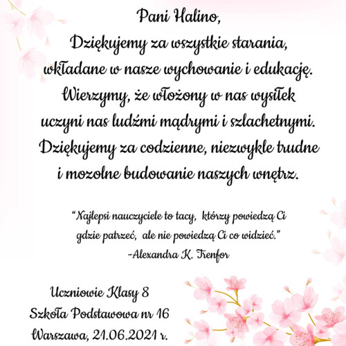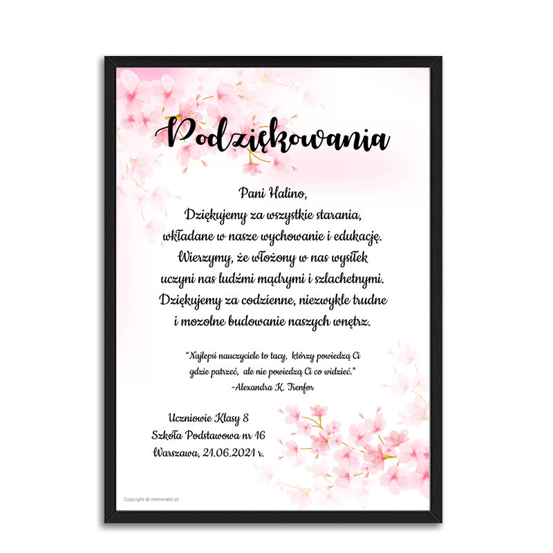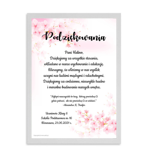 Podziękowania kwiat wiśni - plakat dla nauczyciela