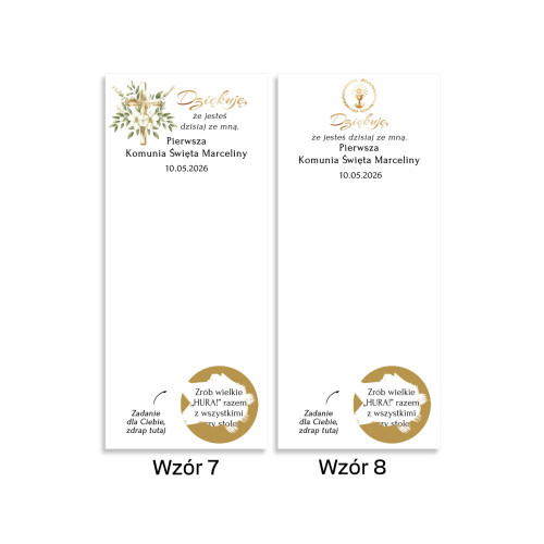 Podziękowanie Upominek Zdrapki zadania dla gości, gra Komunia Święta PREMIUM