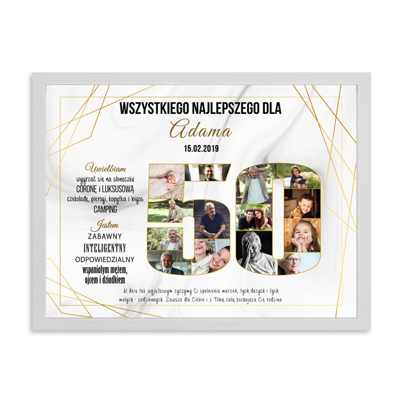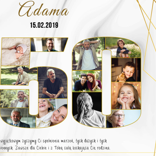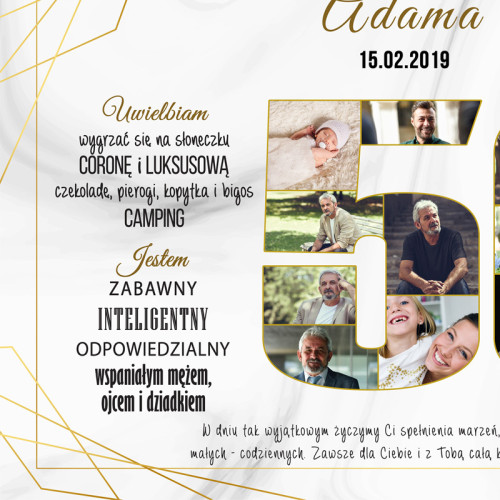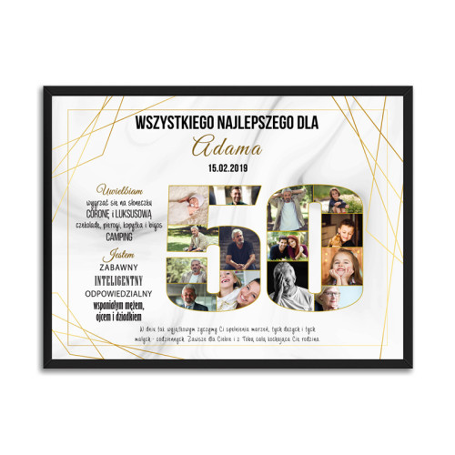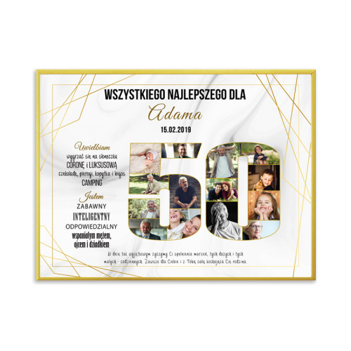 Plakat ze zdjęciami to oryginalny pomysł na urodzinowy prezent. Oprócz zdjęć na plakacie możesz umieścić najważniejsze wydarzenia z życia solenizanta, jego cechy charakteru, co lubi oraz oczywiście życzenia. Możliwa zmiana kolorystyki.