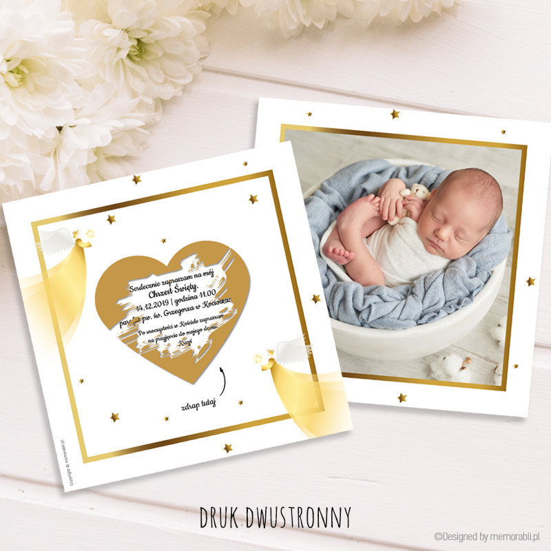 Zaproś najbliższych na Chrzest Święty swojego dziecka w oryginalny sposób - zaproszeniem ze zdjęciem Maluszka i tekstem ukrytym pod zdrapką!