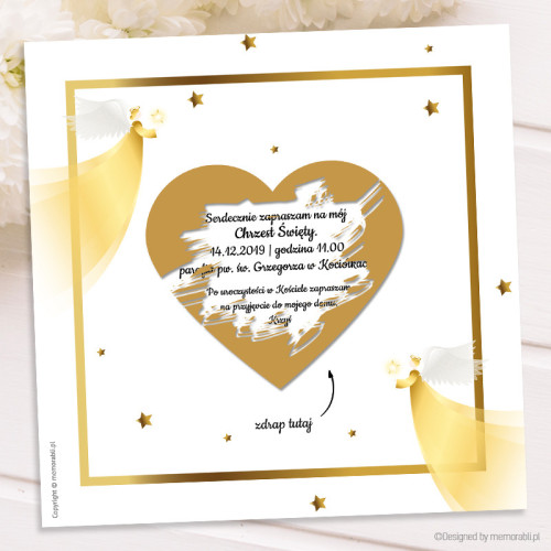 Zaproszenie kartka zdrapka ze zdjęciem Twojego dziecka będzie bardzo miłą niespodzianką i oryginalną formą zaproszenia najbliższych na Chrzest Święty.