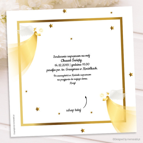Zaproszenie na chrzest święty - kartka zdrapka złota aniołki 2