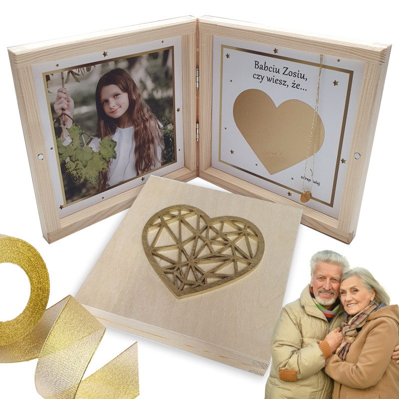 Prezent dla Babci / dziadka pudełko zdrapka złota foto zdjęcie szkatułka