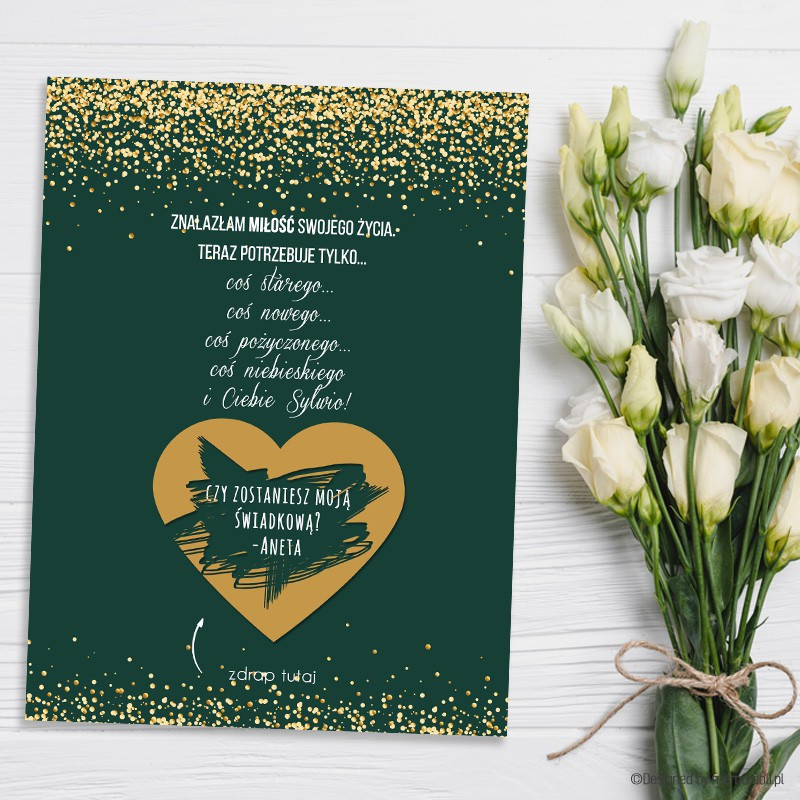 Zostaniesz moją świadkową / świadkiem konfetti zielona - kartka zdrapka