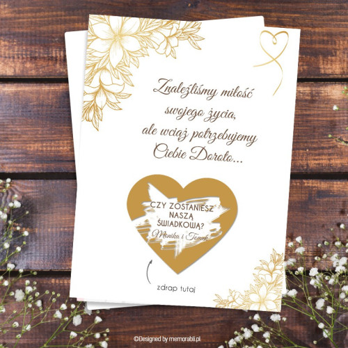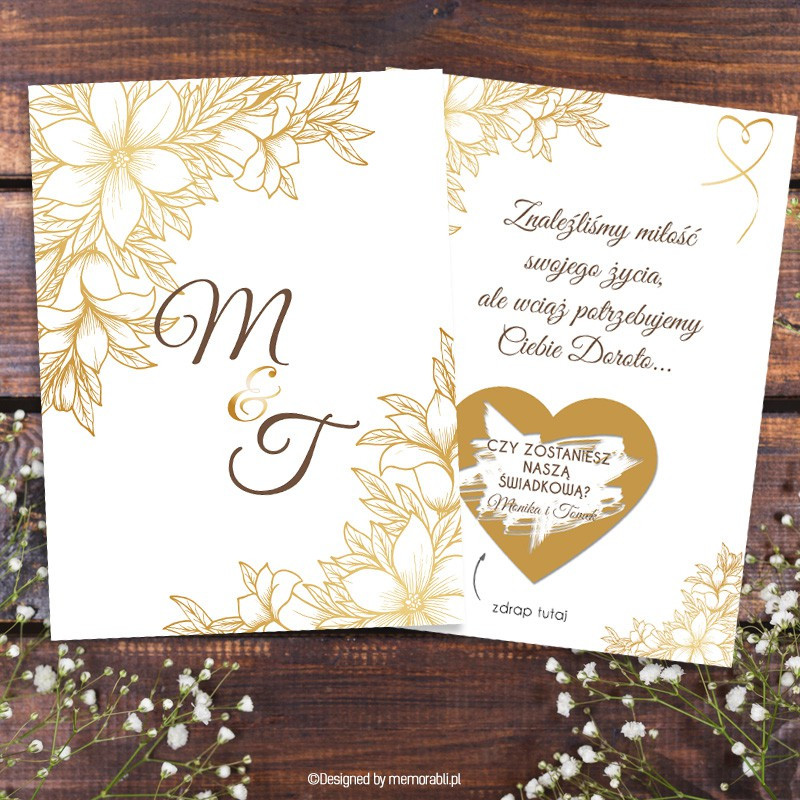 Zostaniesz moją świadkową / świadkiem kwiaty złote - kartka zdrapka