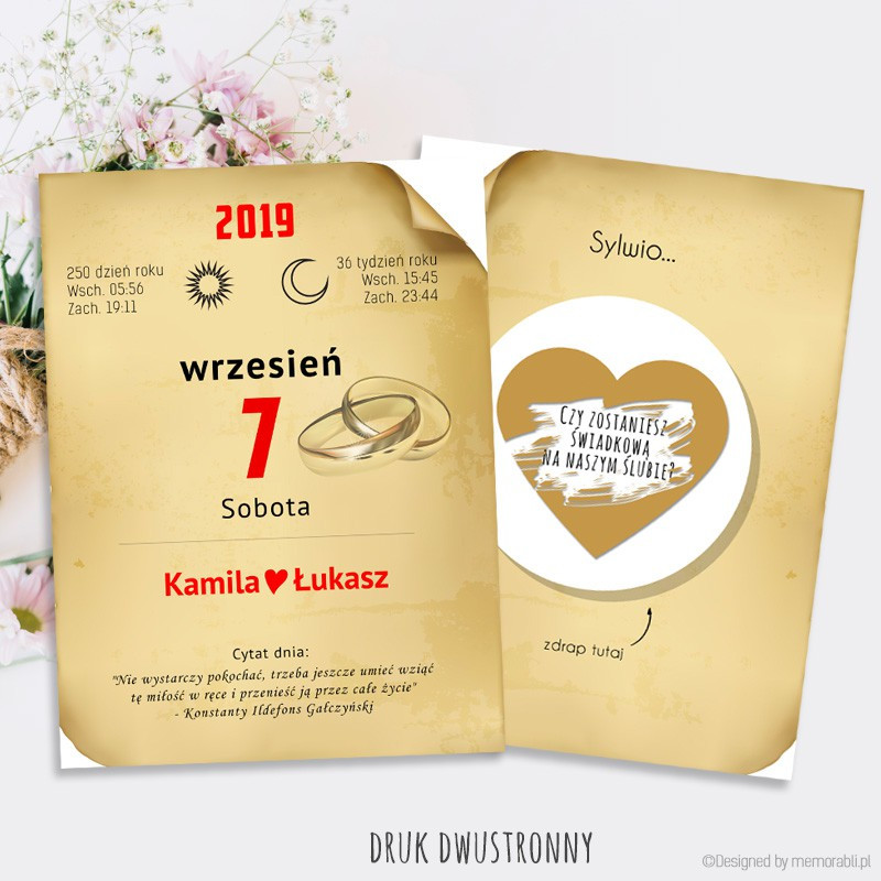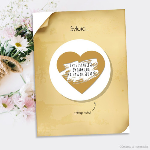 Zadaj najważniejsze pytanie bliskiej osobie w oryginalny sposób. Czy zostaniesz moją świadkową? Czy zostaniesz moim świadkiem? Spersonalizowane kartki ze zdrapką będą bardzo miłą niespodzianką dla waszych przyjaciół.