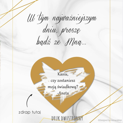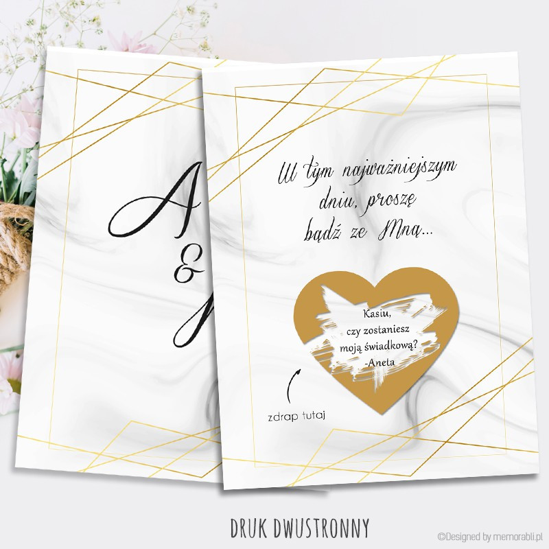 Zostaniesz moją świadkową / świadkiem marmur ze złotym dekorem - kartka zdrapka